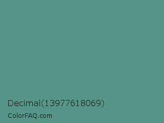 Decimal 13977618069 Color is a normal cyan color and the nearest color is Steel Teal #5f8a8b. Hex code #569587 and RGB value is rgb(86,149,135). In RGB color space, this color is composed of 34% red, 58% green, 53% blue, In CMYK color space, this color is composed of 42% cyan, 0% magenta, 9% yellow , 42% black , In HSL color space, this color has a hue angle of 167° , 27% saturation and 46% lightness.