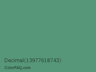 Decimal 13977618743 Color is a normal green color and the nearest color is Wintergreen Dream #56887d. Hex code #569679 and RGB value is rgb(86,150,121). In RGB color space, this color is composed of 34% red, 59% green, 47% blue, In CMYK color space, this color is composed of 43% cyan, 0% magenta, 19% yellow , 41% black , In HSL color space, this color has a hue angle of 153° , 27% saturation and 46% lightness.