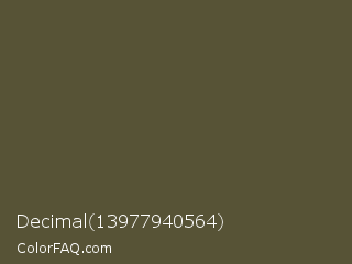Decimal 13977940564 Color is a dark yellow color and the nearest color is Verdigris #5d5e37. Hex code #575336 and RGB value is rgb(87,83,54). In RGB color space, this color is composed of 34% red, 33% green, 21% blue, In CMYK color space, this color is composed of 0% cyan, 5% magenta, 38% yellow , 66% black , In HSL color space, this color has a hue angle of 53° , 23% saturation and 28% lightness.