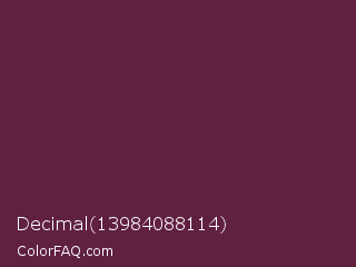 Decimal 13984088114 Color is a dark rose color and the nearest color is Tawny Port #692545. Hex code #602040 and RGB value is rgb(96,32,64). In RGB color space, this color is composed of 38% red, 13% green, 25% blue, In CMYK color space, this color is composed of 0% cyan, 67% magenta, 33% yellow , 62% black , In HSL color space, this color has a hue angle of 330° , 50% saturation and 25% lightness.