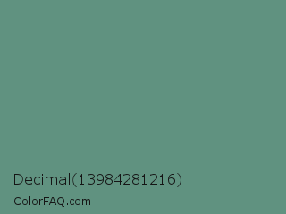 Decimal 13984281216 Color is a normal green color and the nearest color is Steel Teal #5f8a8b. Hex code #609280 and RGB value is rgb(96,146,128). In RGB color space, this color is composed of 38% red, 57% green, 50% blue, In CMYK color space, this color is composed of 34% cyan, 0% magenta, 12% yellow , 43% black , In HSL color space, this color has a hue angle of 158° , 21% saturation and 47% lightness.