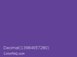 Decimal 13984957280 Color is a normal violet color and the nearest color is Butterfly Bush #624e9a. Hex code #614298 and RGB value is rgb(97,66,152). In RGB color space, this color is composed of 38% red, 26% green, 60% blue, In CMYK color space, this color is composed of 36% cyan, 57% magenta, 0% yellow , 40% black , In HSL color space, this color has a hue angle of 262° , 39% saturation and 43% lightness.