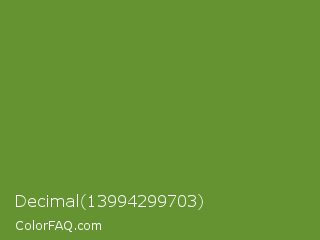 Decimal 13994299703 Color is a normal green color and the nearest color is Maximum Green #5e8c31. Hex code #659331 and RGB value is rgb(101,147,49). In RGB color space, this color is composed of 40% red, 58% green, 19% blue, In CMYK color space, this color is composed of 31% cyan, 0% magenta, 67% yellow , 42% black , In HSL color space, this color has a hue angle of 88° , 50% saturation and 38% lightness.