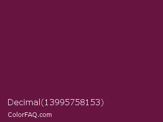Decimal 13995758153 Color is a dark rose color and the nearest color is Tawny Port #692545. Hex code #681441 and RGB value is rgb(104,20,65). In RGB color space, this color is composed of 41% red, 8% green, 25% blue, In CMYK color space, this color is composed of 0% cyan, 81% magenta, 38% yellow , 59% black , In HSL color space, this color has a hue angle of 328° , 68% saturation and 24% lightness.