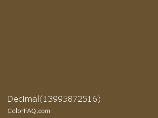 Decimal 13995872516 Color is a dark orange color and the nearest color is Shingle Fawn #6b4e31. Hex code #685230 and RGB value is rgb(104,82,48). In RGB color space, this color is composed of 41% red, 32% green, 19% blue, In CMYK color space, this color is composed of 0% cyan, 21% magenta, 54% yellow , 59% black , In HSL color space, this color has a hue angle of 36° , 37% saturation and 30% lightness.