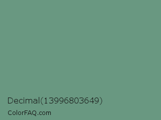 Decimal 13996803649 Color is a normal green color and the nearest color is Laurel #749378. Hex code #699881 and RGB value is rgb(105,152,129). In RGB color space, this color is composed of 41% red, 60% green, 51% blue, In CMYK color space, this color is composed of 31% cyan, 0% magenta, 15% yellow , 40% black , In HSL color space, this color has a hue angle of 151° , 19% saturation and 50% lightness.