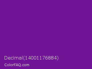 Decimal 14001176884 Color is a normal purple color and the nearest color is Seance #731e8f. Hex code #701696 and RGB value is rgb(112,22,150). In RGB color space, this color is composed of 44% red, 9% green, 59% blue, In CMYK color space, this color is composed of 25% cyan, 85% magenta, 0% yellow , 41% black , In HSL color space, this color has a hue angle of 282° , 74% saturation and 34% lightness.
