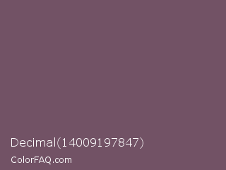 Decimal 14009197847 Color is a normal magenta color and the nearest color is Scorpion #695f62. Hex code #725265 and RGB value is rgb(114,82,101). In RGB color space, this color is composed of 45% red, 32% green, 40% blue, In CMYK color space, this color is composed of 0% cyan, 28% magenta, 11% yellow , 55% black , In HSL color space, this color has a hue angle of 324° , 16% saturation and 38% lightness.