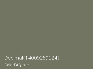 Decimal 14009259124 Color is a normal yellow color and the nearest color is Pablo #776f61. Hex code #727562 and RGB value is rgb(114,117,98). In RGB color space, this color is composed of 45% red, 46% green, 38% blue, In CMYK color space, this color is composed of 3% cyan, 0% magenta, 16% yellow , 54% black , In HSL color space, this color has a hue angle of 69° , 9% saturation and 42% lightness.
