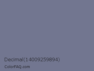 Decimal 14009259894 Color is a normal blue color and the nearest color is Rhythm #777696. Hex code #727690 and RGB value is rgb(114,118,144). In RGB color space, this color is composed of 45% red, 46% green, 56% blue, In CMYK color space, this color is composed of 21% cyan, 18% magenta, 0% yellow , 44% black , In HSL color space, this color has a hue angle of 232° , 12% saturation and 51% lightness.