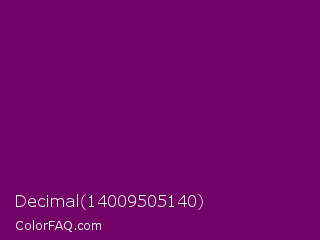 Decimal 14009505140 Color is a dark magenta color and the nearest color is Cardinal Pink #8c055e. Hex code #730266 and RGB value is rgb(115,2,102). In RGB color space, this color is composed of 45% red, 1% green, 40% blue, In CMYK color space, this color is composed of 0% cyan, 98% magenta, 11% yellow , 55% black , In HSL color space, this color has a hue angle of 307° , 97% saturation and 23% lightness.