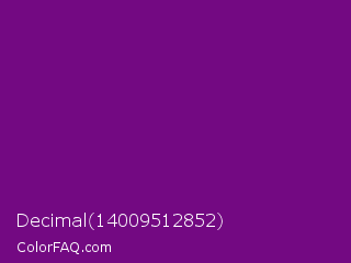Decimal 14009512852 Color is a dark magenta color and the nearest color is Patriarch #800080. Hex code #730982 and RGB value is rgb(115,9,130). In RGB color space, this color is composed of 45% red, 4% green, 51% blue, In CMYK color space, this color is composed of 12% cyan, 93% magenta, 0% yellow , 49% black , In HSL color space, this color has a hue angle of 293° , 87% saturation and 27% lightness.