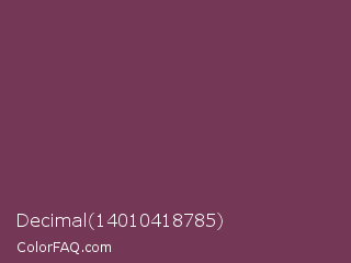 Decimal 14010418785 Color is a normal rose color and the nearest color is Cosmic #76395d. Hex code #743755 and RGB value is rgb(116,55,85). In RGB color space, this color is composed of 45% red, 22% green, 33% blue, In CMYK color space, this color is composed of 0% cyan, 53% magenta, 27% yellow , 55% black , In HSL color space, this color has a hue angle of 330° , 36% saturation and 34% lightness.