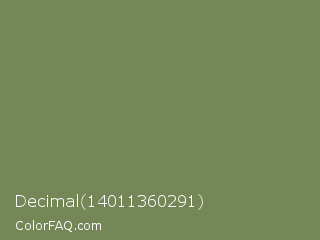 Decimal 14011360291 Color is a normal green color and the nearest color is Limed Ash #747d63. Hex code #758657 and RGB value is rgb(117,134,87). In RGB color space, this color is composed of 46% red, 53% green, 34% blue, In CMYK color space, this color is composed of 13% cyan, 0% magenta, 35% yellow , 47% black , In HSL color space, this color has a hue angle of 82° , 21% saturation and 43% lightness.