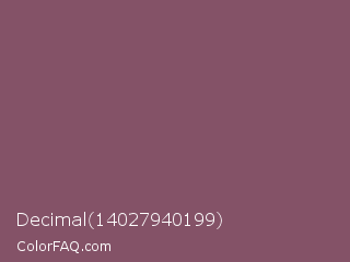 Decimal 14027940199 Color is a normal rose color and the nearest color is Twilight Lavender #8a496b. Hex code #845267 and RGB value is rgb(132,82,103). In RGB color space, this color is composed of 52% red, 32% green, 40% blue, In CMYK color space, this color is composed of 0% cyan, 38% magenta, 22% yellow , 48% black , In HSL color space, this color has a hue angle of 335° , 23% saturation and 42% lightness.