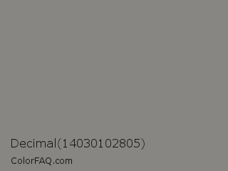 Decimal 14030102805 Color is a normal orange color and the nearest color is Battleship Grey #848482. Hex code #878683 and RGB value is rgb(135,134,131). In RGB color space, this color is composed of 53% red, 53% green, 51% blue, In CMYK color space, this color is composed of 0% cyan, 1% magenta, 3% yellow , 47% black , In HSL color space, this color has a hue angle of 45° , 2% saturation and 52% lightness.
