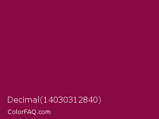 Decimal 14030312840 Color is a dark rose color and the nearest color is Rose Bud Cherry #800b47. Hex code #880944 and RGB value is rgb(136,9,68). In RGB color space, this color is composed of 53% red, 4% green, 27% blue, In CMYK color space, this color is composed of 0% cyan, 93% magenta, 50% yellow , 47% black , In HSL color space, this color has a hue angle of 332° , 88% saturation and 28% lightness.