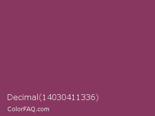 Decimal 14030411336 Color is a normal rose color and the nearest color is Boysenberry #873260. Hex code #883860 and RGB value is rgb(136,56,96). In RGB color space, this color is composed of 53% red, 22% green, 38% blue, In CMYK color space, this color is composed of 0% cyan, 59% magenta, 29% yellow , 47% black , In HSL color space, this color has a hue angle of 330° , 42% saturation and 38% lightness.