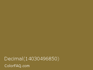Decimal 14030496850 Color is a normal orange color and the nearest color is Spanish Bistre #807532. Hex code #887234 and RGB value is rgb(136,114,52). In RGB color space, this color is composed of 53% red, 45% green, 20% blue, In CMYK color space, this color is composed of 0% cyan, 16% magenta, 62% yellow , 47% black , In HSL color space, this color has a hue angle of 44° , 45% saturation and 37% lightness.