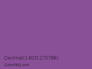 Decimal 14031270788 Color is a normal purple color and the nearest color is French Lilac #86608e. Hex code #895098 and RGB value is rgb(137,80,152). In RGB color space, this color is composed of 54% red, 31% green, 60% blue, In CMYK color space, this color is composed of 10% cyan, 47% magenta, 0% yellow , 40% black , In HSL color space, this color has a hue angle of 288° , 31% saturation and 45% lightness.