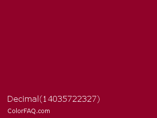 Decimal 14035722327 Color is a dark rose color and the nearest color is Paprika #8d0226. Hex code #900229 and RGB value is rgb(144,2,41). In RGB color space, this color is composed of 56% red, 1% green, 16% blue, In CMYK color space, this color is composed of 0% cyan, 99% magenta, 72% yellow , 44% black , In HSL color space, this color has a hue angle of 344° , 97% saturation and 29% lightness.