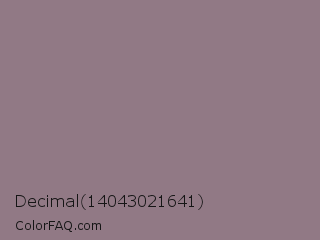 Decimal 14043021641 Color is a normal rose color and the nearest color is Rocket Metallic #8a7f80. Hex code #917985 and RGB value is rgb(145,121,133). In RGB color space, this color is composed of 57% red, 47% green, 52% blue, In CMYK color space, this color is composed of 0% cyan, 17% magenta, 8% yellow , 43% black , In HSL color space, this color has a hue angle of 330° , 10% saturation and 52% lightness.