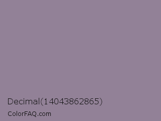 Decimal 14043862865 Color is a normal purple color and the nearest color is Venus #928590. Hex code #928197 and RGB value is rgb(146,129,151). In RGB color space, this color is composed of 57% red, 51% green, 59% blue, In CMYK color space, this color is composed of 3% cyan, 15% magenta, 0% yellow , 41% black , In HSL color space, this color has a hue angle of 286° , 10% saturation and 55% lightness.
