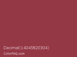 Decimal 14045820304 Color is a normal red color and the nearest color is Smoky Topaz #933d41. Hex code #953846 and RGB value is rgb(149,56,70). In RGB color space, this color is composed of 58% red, 22% green, 27% blue, In CMYK color space, this color is composed of 0% cyan, 62% magenta, 53% yellow , 42% black , In HSL color space, this color has a hue angle of 351° , 45% saturation and 40% lightness.