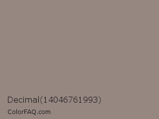 Decimal 14046761993 Color is a normal orange color and the nearest color is Cinereous #98817b. Hex code #968781 and RGB value is rgb(150,135,129). In RGB color space, this color is composed of 59% red, 53% green, 51% blue, In CMYK color space, this color is composed of 0% cyan, 10% magenta, 14% yellow , 41% black , In HSL color space, this color has a hue angle of 17° , 9% saturation and 55% lightness.