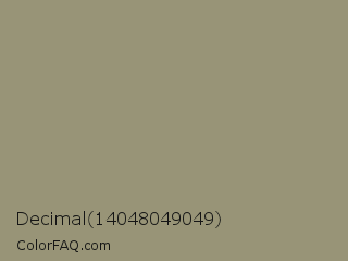 Decimal 14048049049 Color is a normal yellow color and the nearest color is Gurkha #9a9577. Hex code #989477 and RGB value is rgb(152,148,119). In RGB color space, this color is composed of 60% red, 58% green, 47% blue, In CMYK color space, this color is composed of 0% cyan, 3% magenta, 22% yellow , 40% black , In HSL color space, this color has a hue angle of 53° , 14% saturation and 53% lightness.