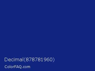 Decimal 878781960 Color is a dark blue color and the nearest color is Catalina Blue #062a78. Hex code #102580 and RGB value is rgb(16,37,128). In RGB color space, this color is composed of 6% red, 15% green, 50% blue, In CMYK color space, this color is composed of 88% cyan, 71% magenta, 0% yellow , 50% black , In HSL color space, this color has a hue angle of 229° , 78% saturation and 28% lightness.
