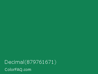 Decimal 879761671 Color is a dark green color and the nearest color is Salem #097f4b. Hex code #118253 and RGB value is rgb(17,130,83). In RGB color space, this color is composed of 7% red, 51% green, 33% blue, In CMYK color space, this color is composed of 87% cyan, 0% magenta, 36% yellow , 49% black , In HSL color space, this color has a hue angle of 155° , 77% saturation and 29% lightness.