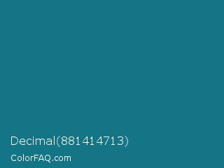 Decimal 881414713 Color is a dark cyan color and the nearest color is Metallic Seaweed #0a7e8c. Hex code #147587 and RGB value is rgb(20,117,135). In RGB color space, this color is composed of 8% red, 46% green, 53% blue, In CMYK color space, this color is composed of 85% cyan, 13% magenta, 0% yellow , 47% black , In HSL color space, this color has a hue angle of 189° , 74% saturation and 30% lightness.
