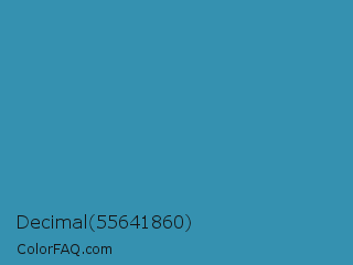 Decimal 55641860 Color is a normal blue color and the nearest color is Boston Blue #3b91b4. Hex code #3591b0 and RGB value is rgb(53,145,176). In RGB color space, this color is composed of 21% red, 57% green, 69% blue, In CMYK color space, this color is composed of 70% cyan, 18% magenta, 0% yellow , 31% black , In HSL color space, this color has a hue angle of 195° , 54% saturation and 45% lightness.