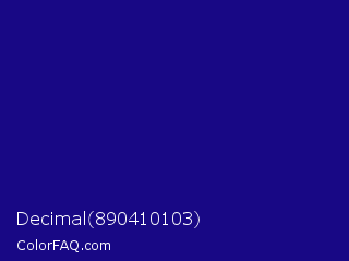 Decimal 890410103 Color is a dark indigo color and the nearest color is Ultramarine #120a8f. Hex code #180885 and RGB value is rgb(24,8,133). In RGB color space, this color is composed of 9% red, 3% green, 52% blue, In CMYK color space, this color is composed of 82% cyan, 94% magenta, 0% yellow , 48% black , In HSL color space, this color has a hue angle of 248° , 89% saturation and 28% lightness.