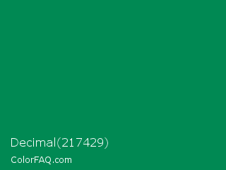 Decimal 217429 Color is a dark green color and the nearest color is Spanish Green #009150. Hex code #008953 and RGB value is rgb(0,137,83). In RGB color space, this color is composed of 0% red, 54% green, 33% blue, In CMYK color space, this color is composed of 100% cyan, 0% magenta, 39% yellow , 46% black , In HSL color space, this color has a hue angle of 156° , 100% saturation and 27% lightness.
