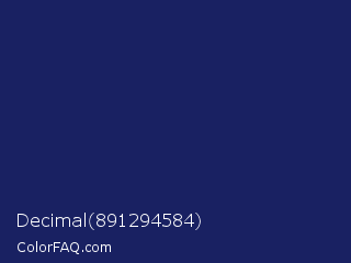 Decimal 891294584 Color is a dark blue color and the nearest color is Lucky Point #1a1a68. Hex code #192162 and RGB value is rgb(25,33,98). In RGB color space, this color is composed of 10% red, 13% green, 38% blue, In CMYK color space, this color is composed of 74% cyan, 66% magenta, 0% yellow , 62% black , In HSL color space, this color has a hue angle of 233° , 59% saturation and 24% lightness.