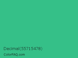 Decimal 55715478 Color is a normal green color and the nearest color is Mountain Meadow #30ba8f. Hex code #35c088 and RGB value is rgb(53,192,136). In RGB color space, this color is composed of 21% red, 75% green, 53% blue, In CMYK color space, this color is composed of 72% cyan, 0% magenta, 29% yellow , 25% black , In HSL color space, this color has a hue angle of 156° , 57% saturation and 48% lightness.