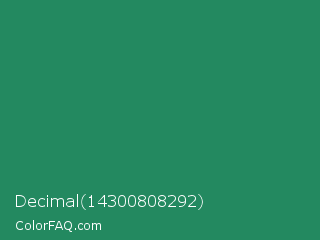 Decimal 14300808292 Color is a normal green color and the nearest color is Eucalyptus #278a5b. Hex code #238960 and RGB value is rgb(35,137,96). In RGB color space, this color is composed of 14% red, 54% green, 38% blue, In CMYK color space, this color is composed of 74% cyan, 0% magenta, 30% yellow , 46% black , In HSL color space, this color has a hue angle of 156° , 59% saturation and 34% lightness.