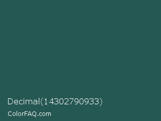 Decimal 14302790933 Color is a dark cyan color and the nearest color is Spectra #2f5a57. Hex code #265853 and RGB value is rgb(38,88,83). In RGB color space, this color is composed of 15% red, 35% green, 33% blue, In CMYK color space, this color is composed of 57% cyan, 0% magenta, 6% yellow , 65% black , In HSL color space, this color has a hue angle of 174° , 40% saturation and 25% lightness.