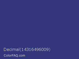 Decimal 14316496009 Color is a normal blue color and the nearest color is Astronaut #283a77. Hex code #313579 and RGB value is rgb(49,53,121). In RGB color space, this color is composed of 19% red, 21% green, 47% blue, In CMYK color space, this color is composed of 60% cyan, 56% magenta, 0% yellow , 53% black , In HSL color space, this color has a hue angle of 237° , 42% saturation and 33% lightness.