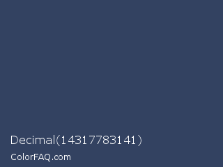 Decimal 14317783141 Color is a dark blue color and the nearest color is Rhino #2e3f62. Hex code #334261 and RGB value is rgb(51,66,97). In RGB color space, this color is composed of 20% red, 26% green, 38% blue, In CMYK color space, this color is composed of 47% cyan, 32% magenta, 0% yellow , 62% black , In HSL color space, this color has a hue angle of 220° , 31% saturation and 29% lightness.