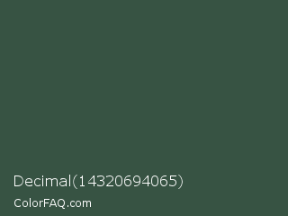Decimal 14320694065 Color is a dark green color and the nearest color is Tom Thumb #3f583b. Hex code #375343 and RGB value is rgb(55,83,67). In RGB color space, this color is composed of 22% red, 33% green, 26% blue, In CMYK color space, this color is composed of 34% cyan, 0% magenta, 19% yellow , 67% black , In HSL color space, this color has a hue angle of 146° , 20% saturation and 27% lightness.