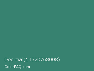 Decimal 14320768008 Color is a normal cyan color and the nearest color is Viridian #40826d. Hex code #378270 and RGB value is rgb(55,130,112). In RGB color space, this color is composed of 22% red, 51% green, 44% blue, In CMYK color space, this color is composed of 58% cyan, 0% magenta, 14% yellow , 49% black , In HSL color space, this color has a hue angle of 166° , 41% saturation and 36% lightness.