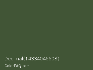 Decimal 14334046608 Color is a dark green color and the nearest color is Tom Thumb #3f583b. Hex code #415536 and RGB value is rgb(65,85,54). In RGB color space, this color is composed of 25% red, 33% green, 21% blue, In CMYK color space, this color is composed of 24% cyan, 0% magenta, 36% yellow , 67% black , In HSL color space, this color has a hue angle of 99° , 22% saturation and 27% lightness.