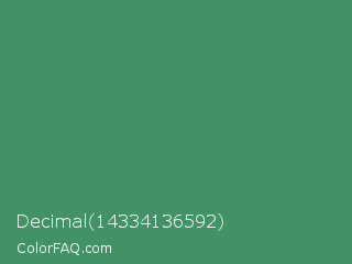 Decimal 14334136592 Color is a normal green color and the nearest color is Viridian #40826d. Hex code #419366 and RGB value is rgb(65,147,102). In RGB color space, this color is composed of 25% red, 58% green, 40% blue, In CMYK color space, this color is composed of 56% cyan, 0% magenta, 31% yellow , 42% black , In HSL color space, this color has a hue angle of 147° , 39% saturation and 42% lightness.