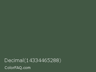 Decimal 14334465288 Color is a dark green color and the nearest color is Gray Asparagus #465945. Hex code #425844 and RGB value is rgb(66,88,68). In RGB color space, this color is composed of 26% red, 35% green, 27% blue, In CMYK color space, this color is composed of 25% cyan, 0% magenta, 23% yellow , 65% black , In HSL color space, this color has a hue angle of 125° , 14% saturation and 30% lightness.