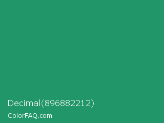 Decimal 896882212 Color is a normal green color and the nearest color is Eucalyptus #278a5b. Hex code #219668 and RGB value is rgb(33,150,104). In RGB color space, this color is composed of 13% red, 59% green, 41% blue, In CMYK color space, this color is composed of 78% cyan, 0% magenta, 31% yellow , 41% black , In HSL color space, this color has a hue angle of 156° , 64% saturation and 36% lightness.
