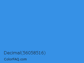 Decimal 56058516 Color is a normal blue color and the nearest color is Bleu De France #318ce7. Hex code #3691e6 and RGB value is rgb(54,145,230). In RGB color space, this color is composed of 21% red, 57% green, 90% blue, In CMYK color space, this color is composed of 77% cyan, 37% magenta, 0% yellow , 10% black , In HSL color space, this color has a hue angle of 209° , 78% saturation and 56% lightness.