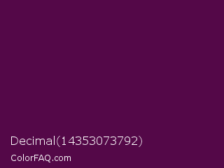 Decimal 14353073792 Color is a very dark magenta color and the nearest color is Loulou #460b41. Hex code #540848 and RGB value is rgb(84,8,72). In RGB color space, this color is composed of 33% red, 3% green, 28% blue, In CMYK color space, this color is composed of 0% cyan, 90% magenta, 14% yellow , 67% black , In HSL color space, this color has a hue angle of 309° , 83% saturation and 18% lightness.